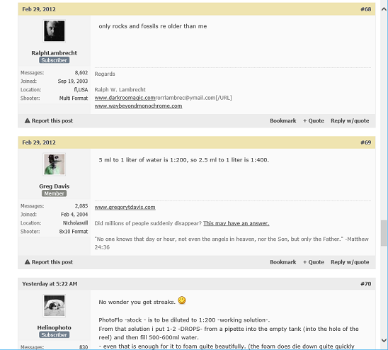 I hope more new people come here and ask whatever questions they feel like and are made to feel welcome. To discriminate how someone goes about finding answers about the analog craft in what is largely a digital world is in my opinion, a fools errand in keeping film use relevant if not vibrant in the coming years.