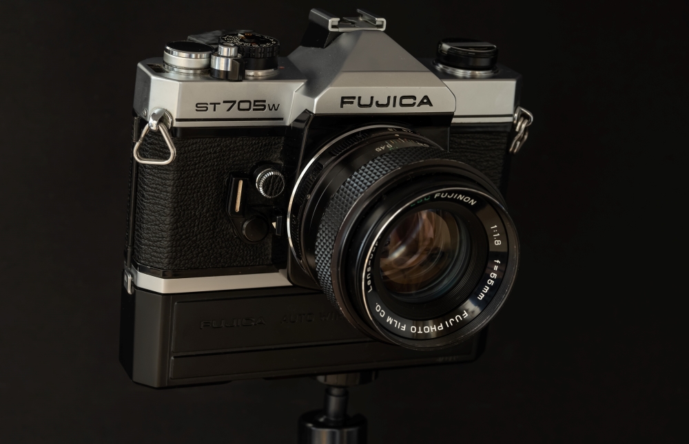 Fujica ST705w with winder. Mint. Looks like previous owner may have used this camera once or twice before shelving it.