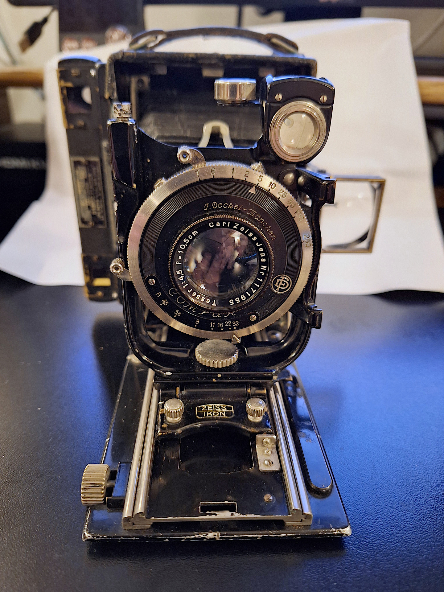I have this lovely Zeiss 6x9 folder with a Hugo Meyer rangefinder and an uncoated Zeiss Jena 10.5cm f/4.5 lens in an ancient Compur.