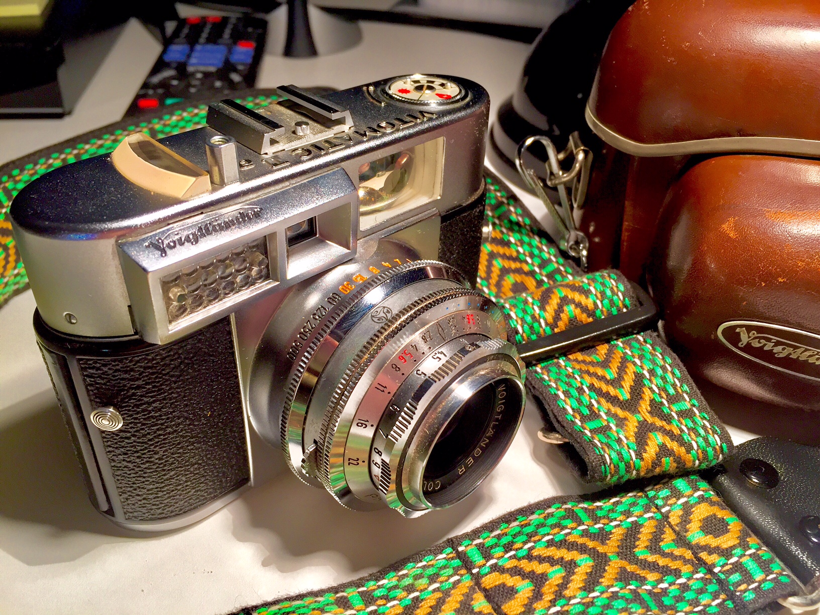*edit* to the left, a chrome Nikkormat FT2.
