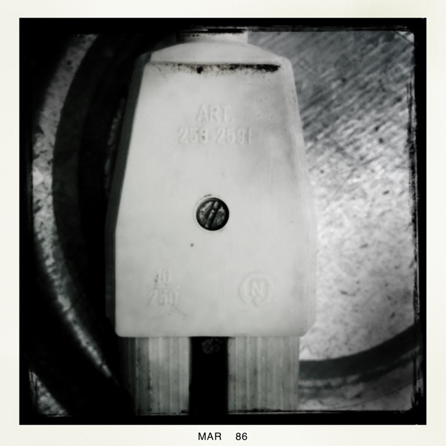 Today my father gave me his fiber print dryer. An old-fashioned one .... curved metal plate, white cotton cloth and various springs to press the print against the heated plates. The type plate says it is a HOGGLANSPRESS (Type 5 Volt 110 Watt 300), ELEKTRO-INDUSTRI FALKOPING SWEDEN. The press itself seems to be in good shape. It is in working condition. Unfortunately that can not be said from the plug that connects the power cord to the press. That plug is in bad shape. It is just not safe anymore and needs to be replaced.