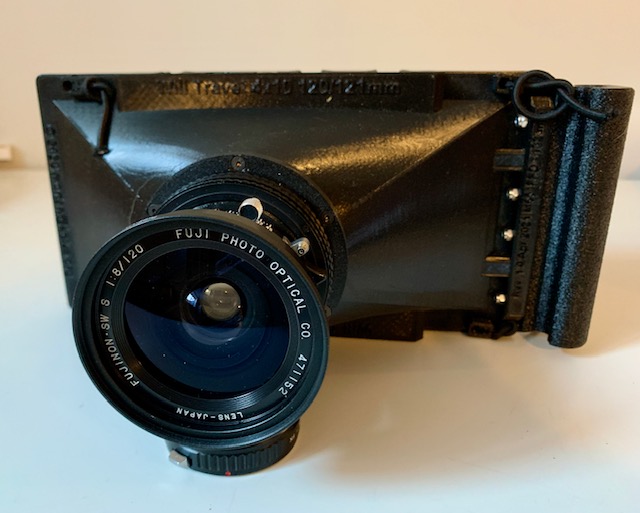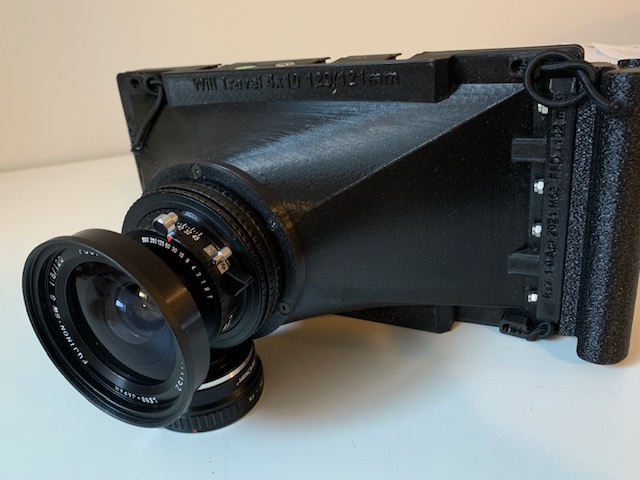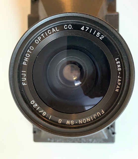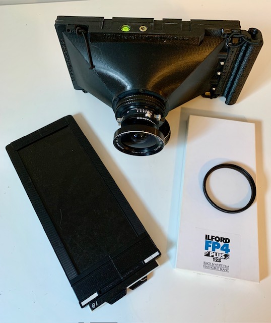 Selling a Will Travel 4 x 10 inch camera with Fujinon SW 120mm f8 lens in Copal 1 shutter and metal helical focusing. Glass very good and shutter fires on all speeds and aperture and shutter blades open and close smoothly and are oil free. Comes with 4 x 10 film holder and box of FP4 with approx 15 sheets. Has tripod sockets for landscape and portrait orientation. Ground glass screen allows for composition and focusing And has the metal focusing helical which allows smooth focusing. I also have a Fotoman viewfinder with 410 120 mask that is available if someone wants to use as a point and shoot. I exposed 2 sheets of film yesterday and results are shown. No light leaks or viginetting. Great way to get into panoramic 4x10.