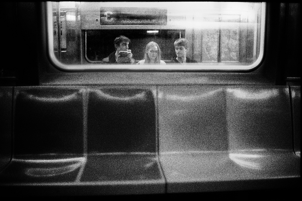 The nice thing is that D3200 is also extremely sharp when you want it to be. I shoot a lot of it, and even through the grain, the prints are extraordinarily detailed. I've been able to resolve the thread pattern in dress shirts under the grain of D3200, processed this same way. That example was shot at a lower speed on a moving subway though, so shake destroyed a lot of the subtle detail.