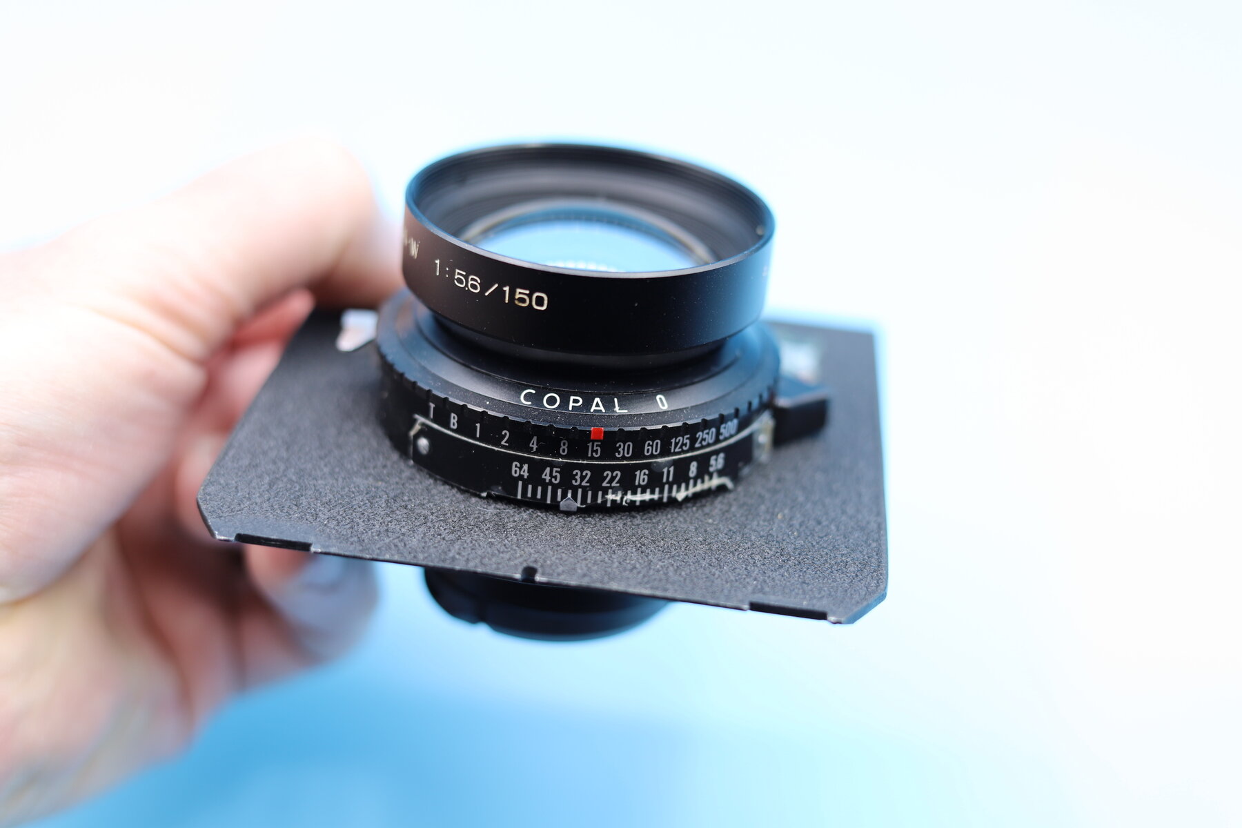 Camera with Fujinon W 150mm f5.6 in modern Copal 0 shutter in a Wista lens board plus 2 film holders is $600 shipped and fee'd within the US