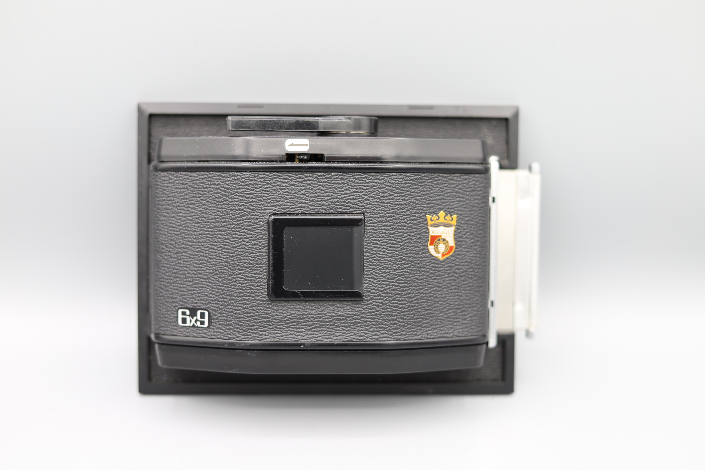 Pretty straightforward. 6x9cm roll film back for 4x5. Really nice shape, in box with documents. Designed for Graflock backs.