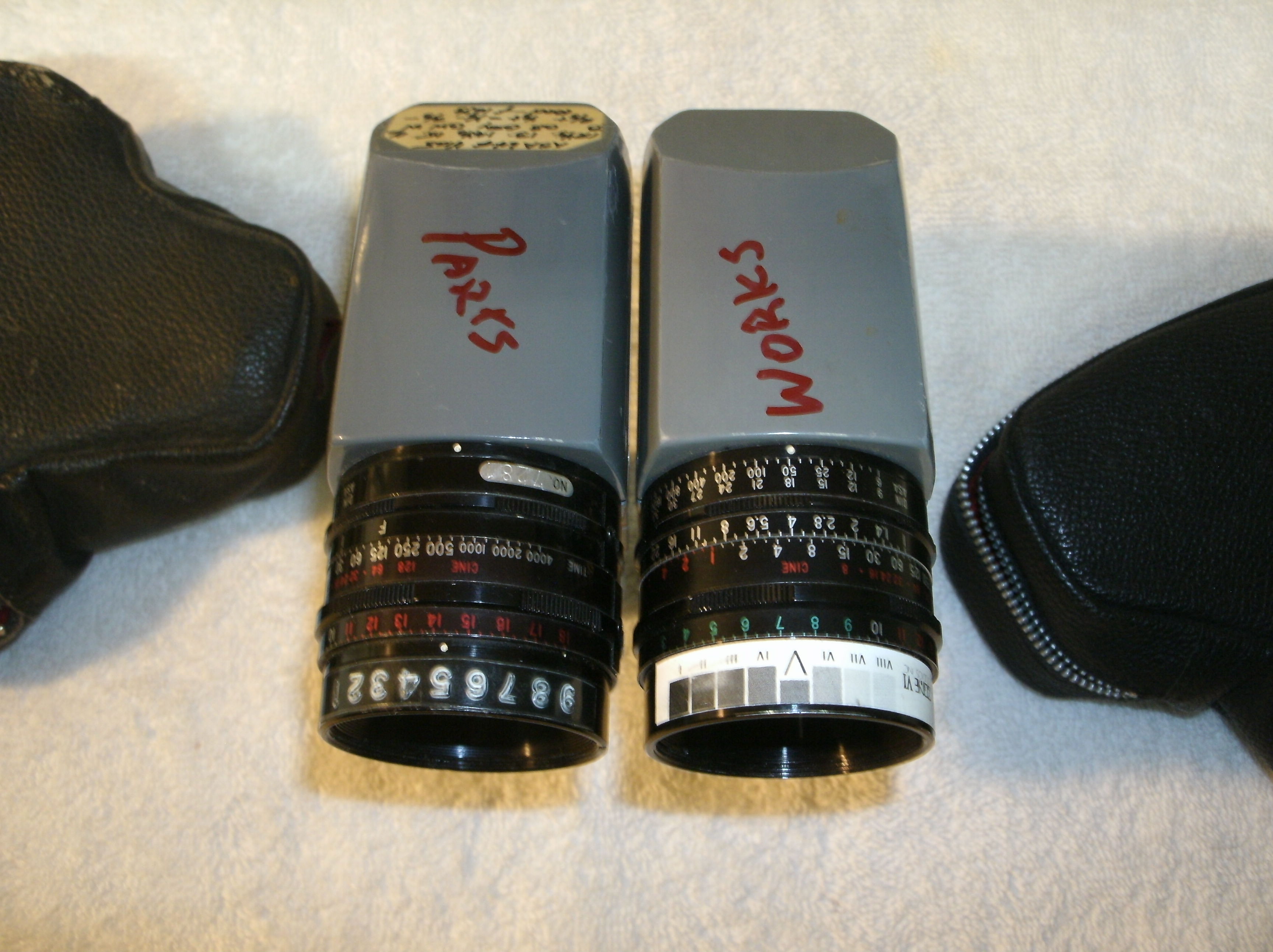 the bad: the switch is a bit sticky but very functional, a baffle(?) is visible in the viewfinder but doesn't affect function. ALSO, it reads about one stop off, I believe it's because of the batteries I have in it being higher voltage than the original mercury cells. Marked for zone system.