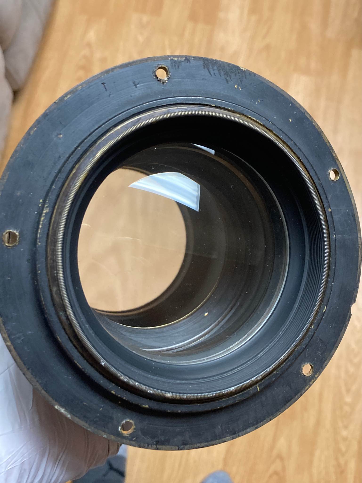 Condition - glass VERY clean and clear. There are few scratches on front element - see pics, but these are meaningless given the huge element. The shutter was just serviced by Tom Lazaroff so that works perfectly. Stopped way down the aperture is not perfectly circular, but not bad at all. $ 789 plus shipping. I ship worldwide to PayPal addresses
