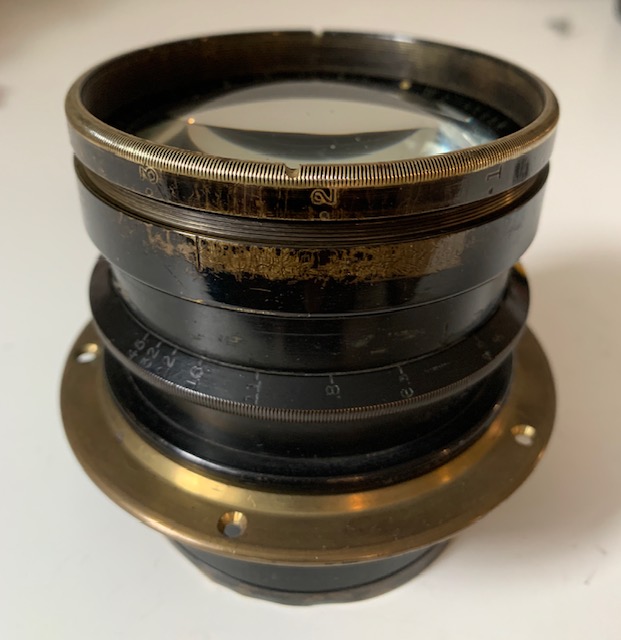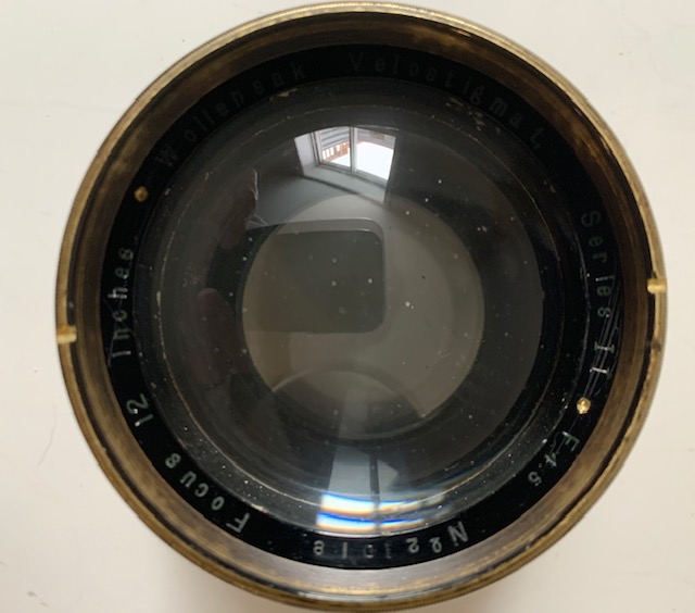 Selling a Wollensak Velostigmat 12 inch f4.5 diffused focus lens that covers 8 x 10. Lens is uncorked and unscrews smoothly to the maximum to allow the maximum soft focus. Glass in good condition with some minor scratches and the usual dust specks. Aperture is oil free and to my old fingers is a tad stiff to turn but younger fingers will have no problem. Maybe needs a touch of oil? Comes with the all important mounting flange. Do a google search to read up on these classic lenses.