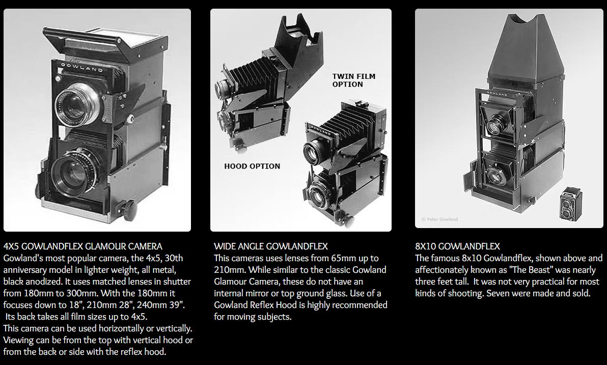 I knew someone was going to bring up Gowlandflex cameras in this discussion... the 8x10 in the right photo is insane.The PDN chimney finder uses a silicon blue cel, rather than the older CDS, so it has that advantage.