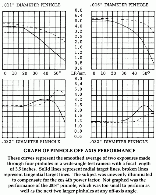 Guess not, although I have some apo lens that will go to f250 that will......maybe.I wouldn't expect swing or tilt to have any effect on a pinhole, other than if you swing/tilt far enough that the off-axis limits (due to pinhole material thickness) come into play. Otherwise, swings and tilts change the relationship between the focal plane of the lens, the in-focus plane in the world, and the film plane. Since pinholes have no focal plane, there's nothing happening here. Now, shift and rise will have the same effects on perspective they'd have with a standard view camera -- front rise will let you shoot upward without keystoning, etc. -- as long as you don't get into that off-axis self-vignetting region (or get the bellows into the light path or something of the sort).