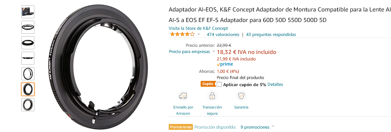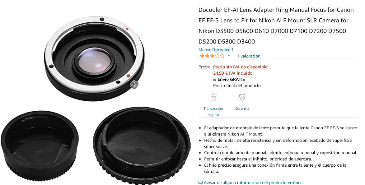 Instead, to mount a Nikon in a Canon EF no glass is required: