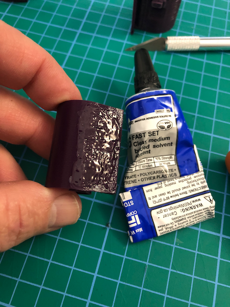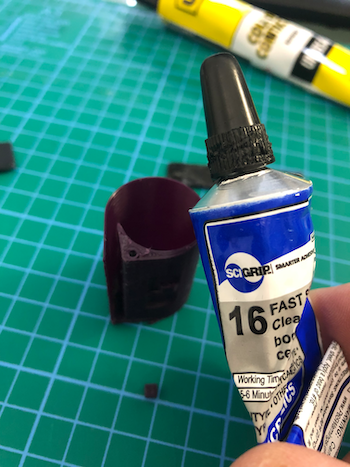 b) Glue the Tab using a good PLA glue. I use SciGrip 16 Acrylics because it's the only glue I have found that glues PLA like a steel weld.