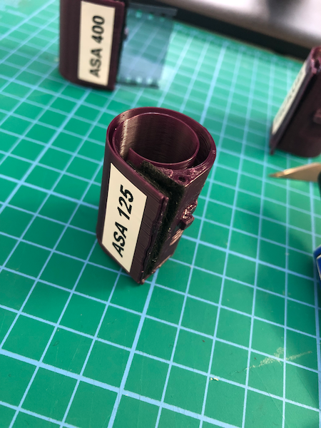 e) Glue the spring to the main body of the cassette. Label the finished cassette according to the tab length you printed. In this case it's a 3.5mm tab corresponding to ASA 125
