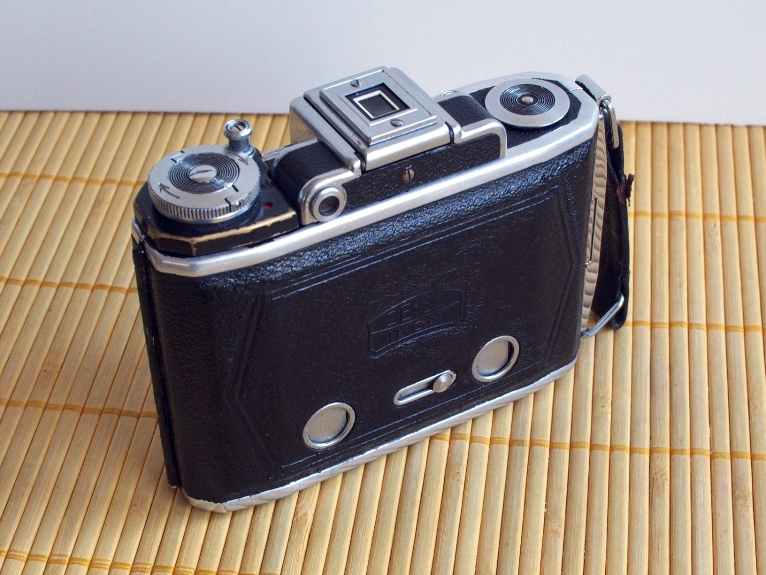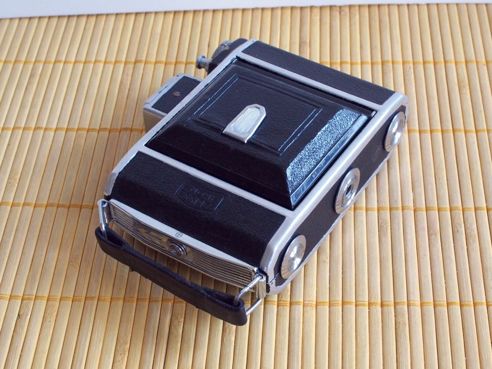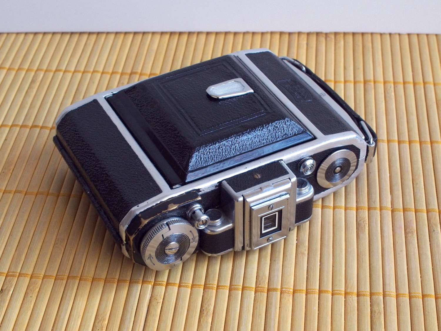 Shutter button on top. Albeda (?) finder but it was so dark and tarnished that I stripped it down. So it is basically a clean optical finder, as accurate a need be for this kind of camera.