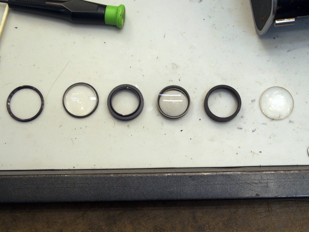 Now here we are 8 years later, and I want to get it back up and running. I have disassembled the viewing lens completely. Below is a photo and description of what I *think* each piece is. Looking at diagrams online, this lens appears to be a cooke triplet design. Front and rear elements that are both convex on one side and flat on the other. A middle element that is concave on both surfaces.