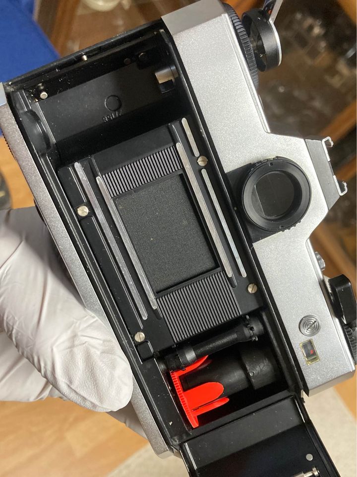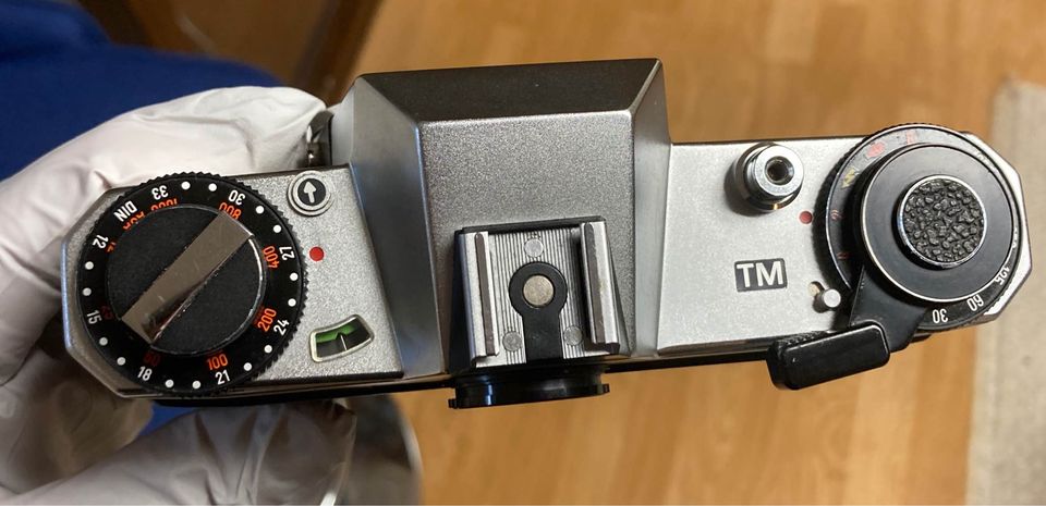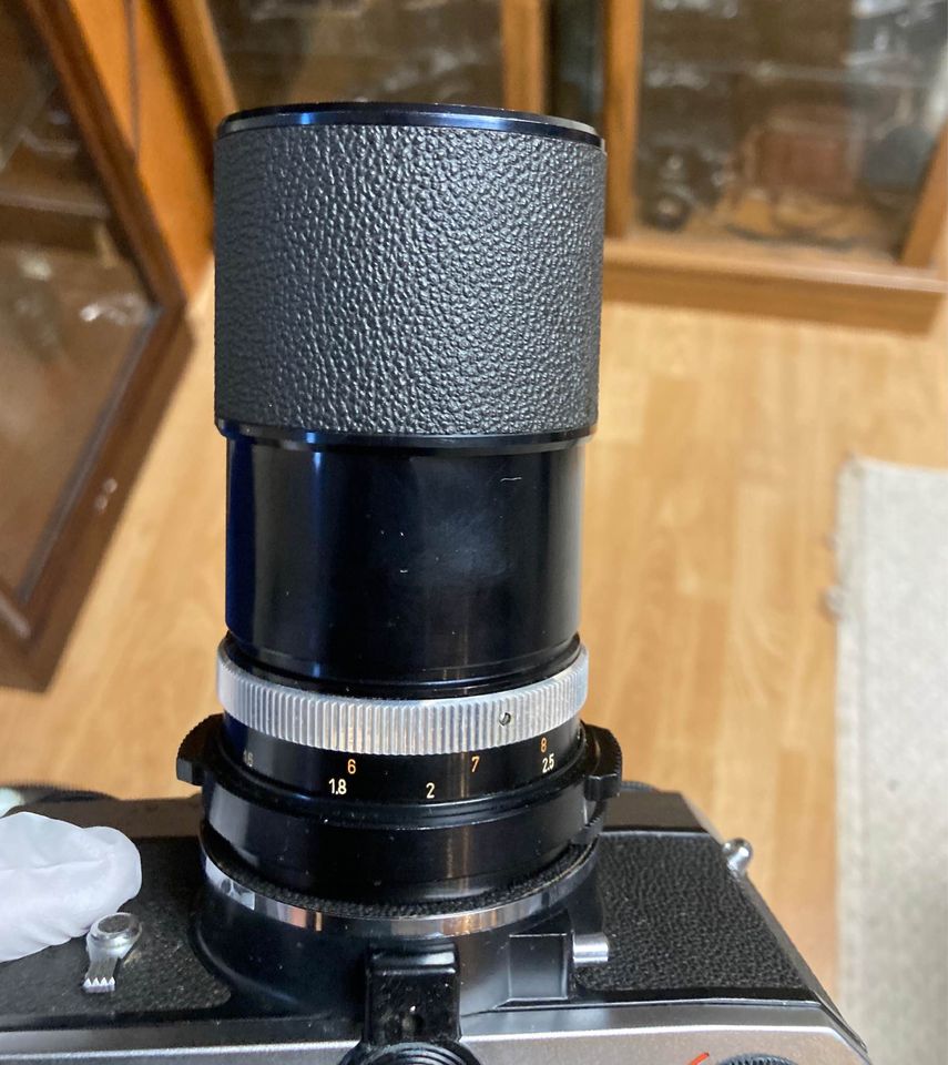 Here is a very scarce Zeiss Ikon TM SL706 Camera with Super Dynarex 135mm f/4 Lens. I believe this is the last camera made by Zeiss Ikon made (1968-72) and it has a 42mm lens mount (Pentax screwmount). The camera is fantastic cosmetic condition. Operationally the shutter looks and sounds good at all speeds. The meter unfortunately is not working although the battery compartment is pretty clean. The lens is also in very good condition with bright and clear glass... very few stray cleaning marks... overall a good solid lens.