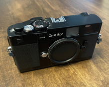I'm selling a black Zeiss Ikon ZM camera body. I bought this camera last year from KEH in EX+ condition. The camera is in very nice shape. Viewfinder is crystal clear. There are a very few marks of wear on the body. Camera works perfectly, batteries included.