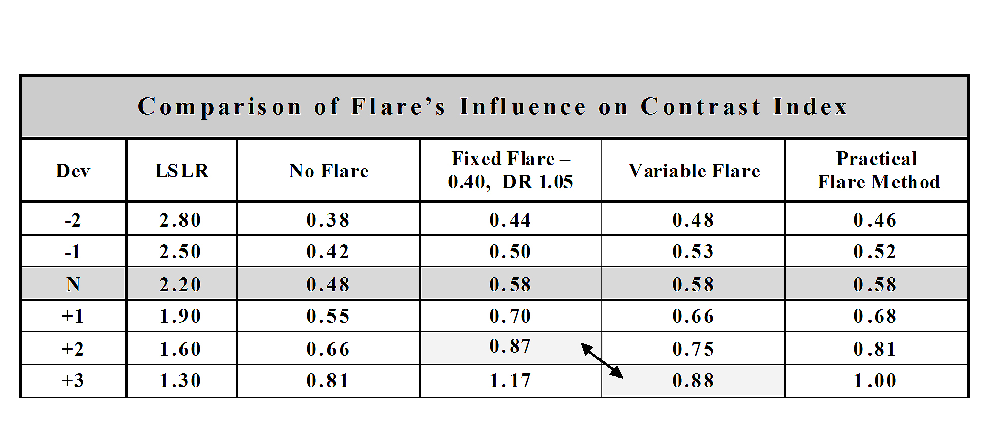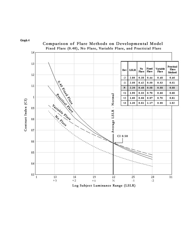 The CI Chart was given to me by Dick Dickerson. It's uses the fixed flare model. I have to assume it still applies to the rest of Kodak. Interesting enough, pushing for speed has the same or almost the same CIs as the variable.