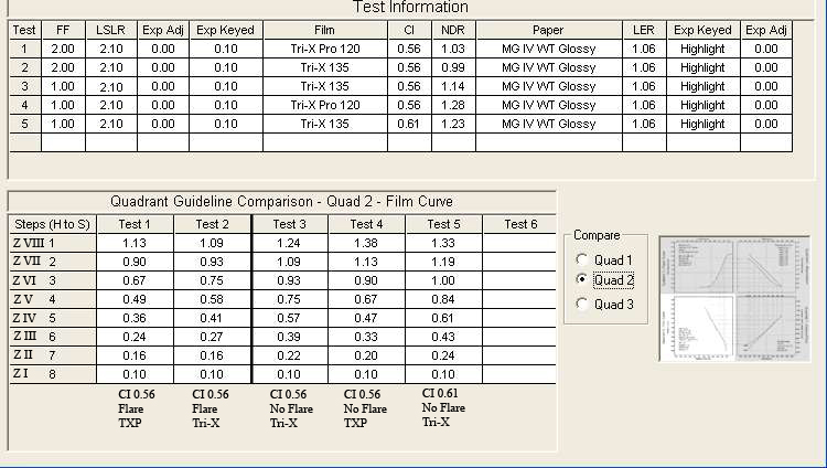 There's something else that I found interesting with these tests. The attachment "Density Comparison Tri-X and TXP" has the negative densities from five different scenarios. The first two are the same as the test above. The next two sets use the same materials except they don't incorporate flare which is more reflective of how the majority of people test.